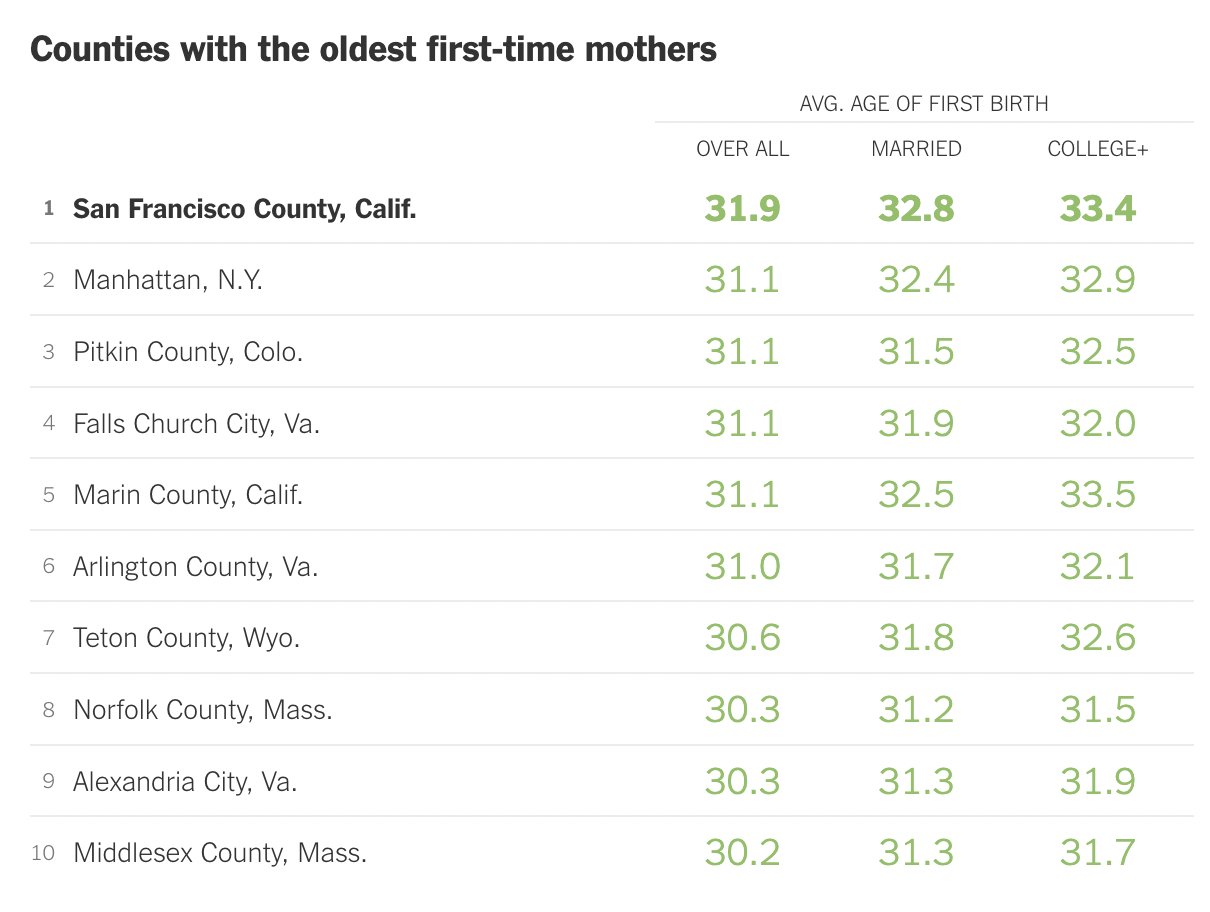 Michael Lai On Twitter Even When Ppl Couple Up Sf Is The 1 City In The Us For Delayed Childbirth The Average Age For A College Educated Sf Woman Giving Birth